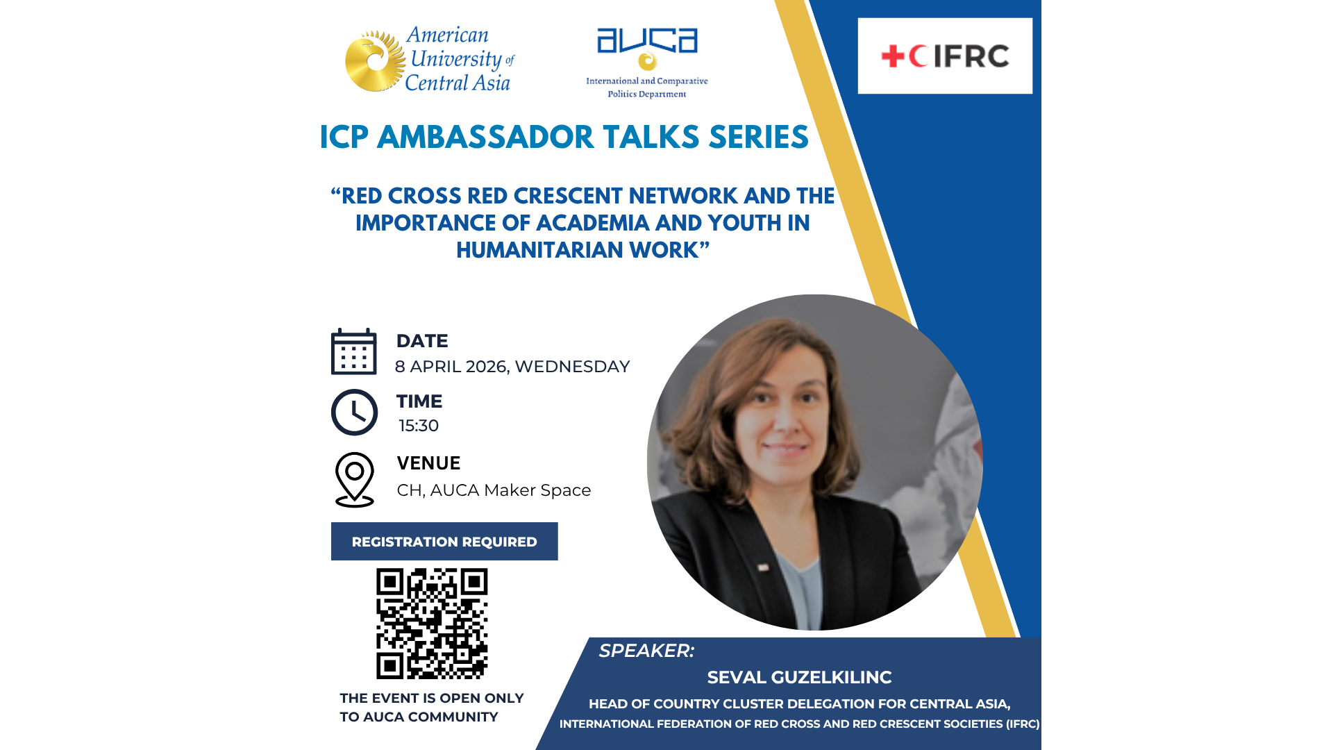 The ICP Department is pleased to invite you to the Ambassador Talks withÌýMs. Seval Guzelkilinc, Head of Country Cluster Delegation for Central Asia,Ìý